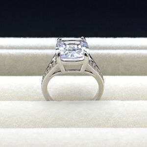 .925 Sterling Silver with White Diamond Cubic Zirconia Radiant Cut Ring Size 6