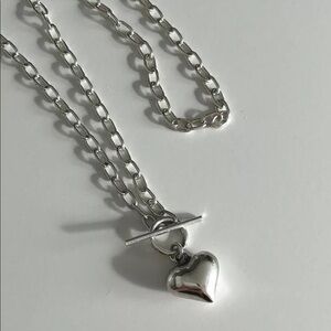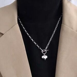 925 Sterling Sliver Chunky Toggle Heart Necklace