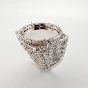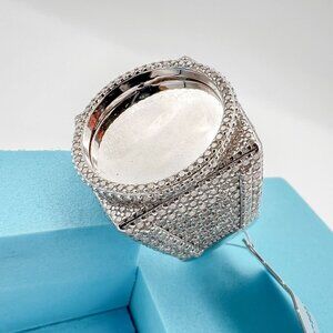 925 Sterling Sliver Moissanite 1inch diameter Picture Ring, 6.138ctw VVS Stones