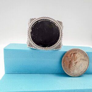 925 Sterling Sliver Moissanite 1inch diameter Picture Ring, 6.138ctw VVS Moissanite Stones