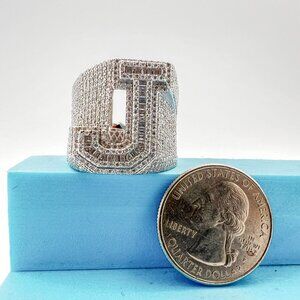 925 Sterling Sliver Moissanite Alphabet J Letter Ring, 3.43ctw VVS Stones Hip Ho