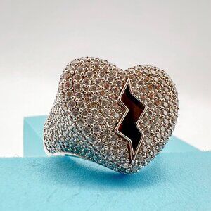 925 Sterling Sliver Moissanite Broken Heart Ring, 2.9ctw VVS Stones Hip Hop Jewe