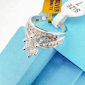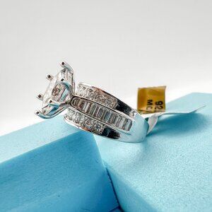 925 Sterling Sliver Moissanite Wedding/Engagement Ring, 2.0ctw VVS Moissanite Stones and Baguettes