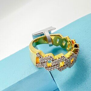 925 Sterling Sliver Moissanite Zig Zag Ring, 0.658ctw VVS Stones Hip Hop Jewelry