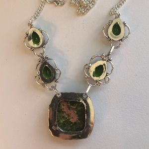 925 Sterling Teardrop Peridot & Unakite Necklace 19"