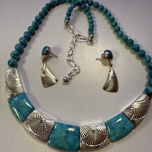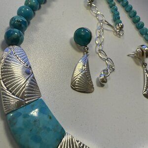 925 Sterling /Turquoise Slab & Silver-Tone Collar Necklace & Earring Set