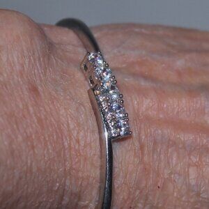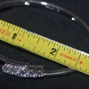 925 Sterling White Sparkling Topaz Locking Statement Believable Bangle Bracelet