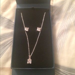 Brand new, never worn still in the box. Cubic zirconia and authentic sterling silver. It was a holiday gift that just wasn't my style, but I'm hoping someone else will like it 😊 chain is about 16" on the necklace and the earrings are equal to about 2 karats of diamonds, only they are cubic zirconia. It will make a nice gift for someone else! 💚