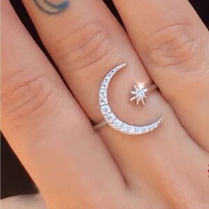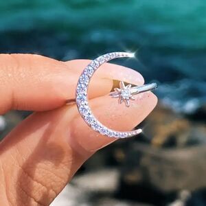 925 Sterling Silver Cuff Ring Trendy Moon & Star Design Paved Shining Zirconia simulated diamond This ring is stunningly gorgeous, suitable for everyday wear.Prepare to turn heads!