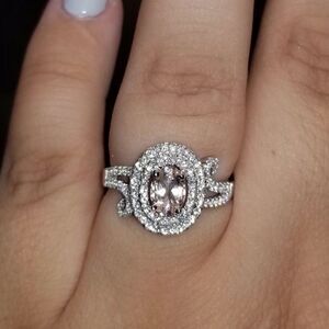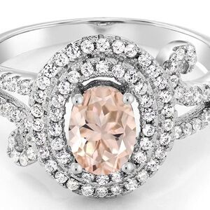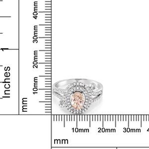 .925 Sterling Silver with Peach Morganite and Diamond Cubic Zirconia Ring