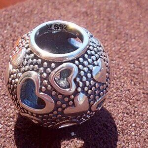 925 Sterling Silver Retro Hearts Charm
