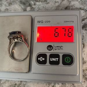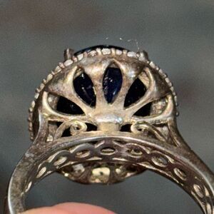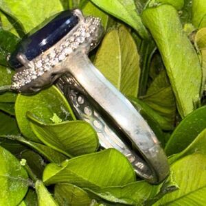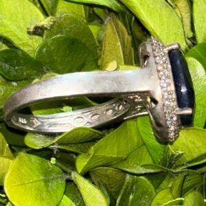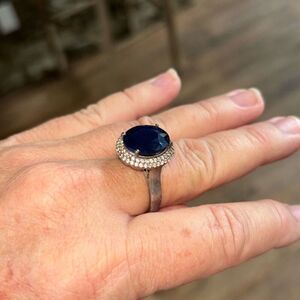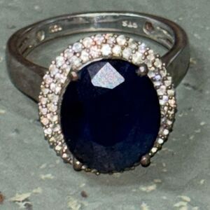 925 Sterling silver Large Dark blue Sapphire & Pave CZ 14mmx12mm,6.78g ring Sz 9