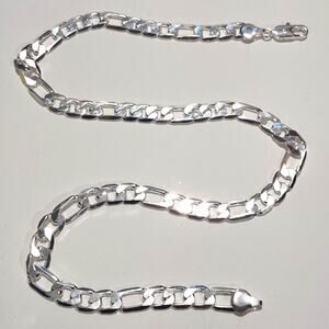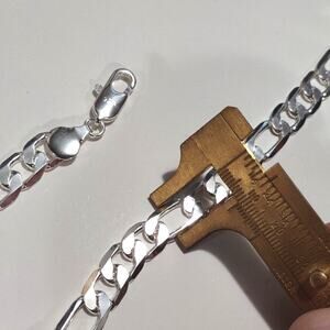 925 Thick Necklace Silver Figaro Chain 10mm THICK Valentines Birthday Gift NEW!