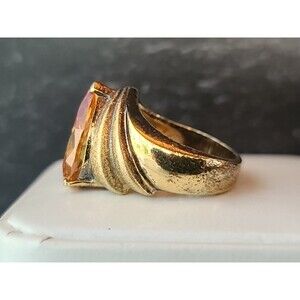 This is a vintage vermeil 925 citrine colored rhinestone statement ring.