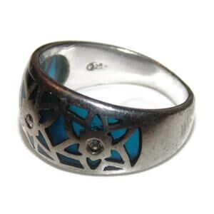 925 Vintage Estate Sterling Silver Ring Statement Blue Sun Catcher Grid Size 7
