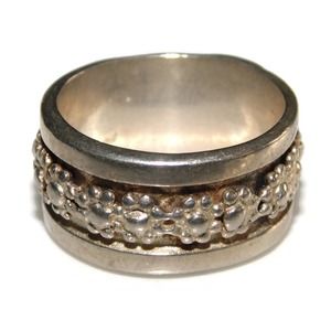 925 Vintage Estate Sterling Silver Ring US Size 6.75 Pinky Flowers Band Mexico