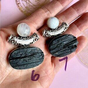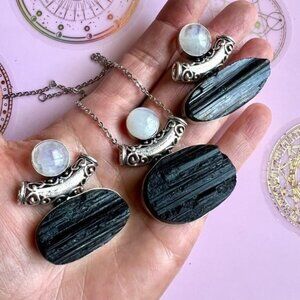 925 Yin Yang YOU CHOOSE! Raw Black Tourmaline + Moonstone Pendant Necklace