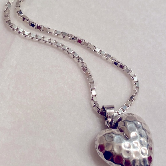 Minimal use. Excellent conditon. Sterling silver. Smoke-free home. Clean. Very pretty and shiny necklace. Nontarnish. Low price already.