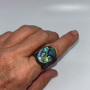 925 silver abalone shell statement ring large intricate Sz 10