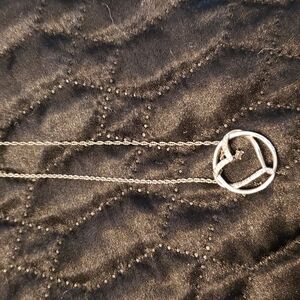 thin rope chain with 925 and diamond open heart pendant. has a small dangle diamond in the center. 20 inch chain. pendant is 3/4 inch round.