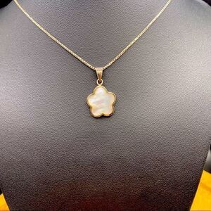 925 silver 18 in box chain with approx 1/2 in floral mother of pearl pendant
