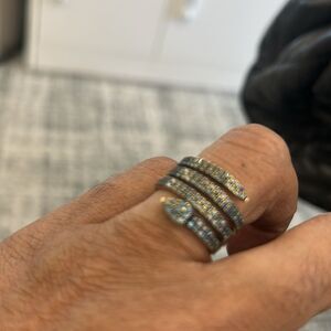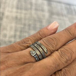 925 sterling silver 1 ctw authentic blue Diamond snake ring size 7
