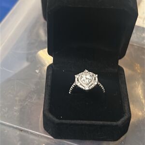 925 sterling silver 2 ct pear shape Moissanite & CZ ring size 7