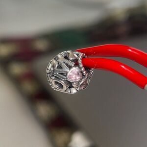 Sterling Silver 925 Mom Pink Cz Charm In very good condition Fits on Pandora bracelet