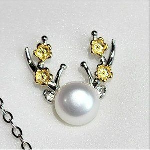 925S Deer Pattern Necklace Ring Earring Freshwater Pearl Jewelry Set