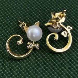 925S Gold Plated 6mm White Cultured Freshwater Pearl Cat Shape Stud Earrings