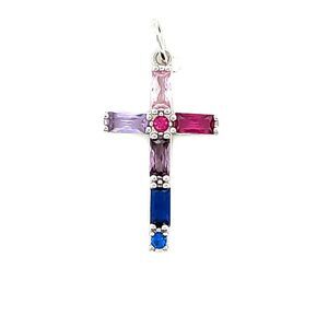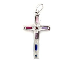 Sterling Silver 925 Multicolor Stones Cross Pendant.