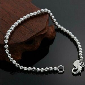 925 Silver 4mm Beads Chain Round Bangle Bracelet