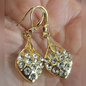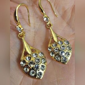 #925 Sterling Gold Plated Crystal Accents + Faux Pearl Ear Dangle Drop Earrings