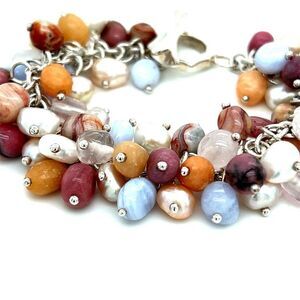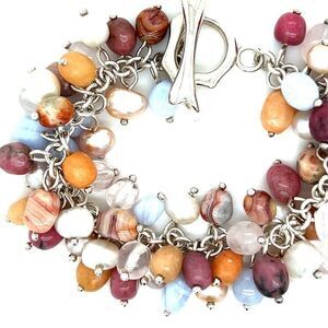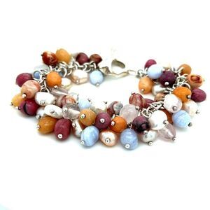 Sterling Silver 925 Multicolor Beads Bracelet .
