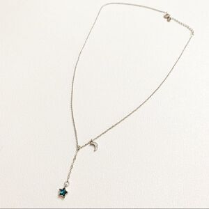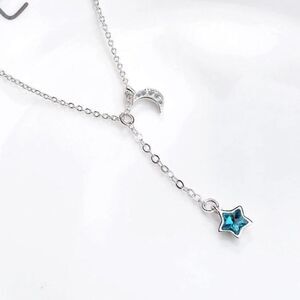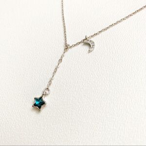 925 sterling silver and the stones are cubic zirconia. Star has a blue stone and the moon has small clear stones. Chain is about 17” but the star dangles about an additional inch from the chain. Lobster clasp closure. This would make a wonderful gift! New in package. Bundle and save!
