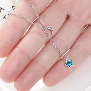 925 Sterling Silver Star and Moon Necklace (Q1)