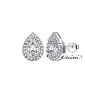 925 Sterling Pear Shape Diamond Halo Stud Earrings