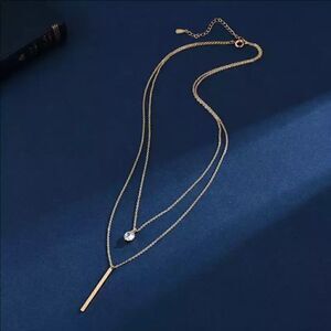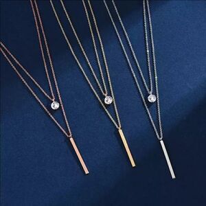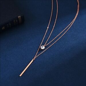 Brand New Beautiful Women's 925 sterling silver necklace, double-layer, with round shiny zirconia