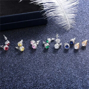 🍁 929 Silver Plated CZ Classic Stud Earrings for Women, UNVN12446