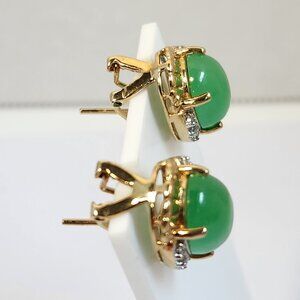 9.29g 18K Gold Genuine Jade Jadeite Diamond Omega Back Earrings 80s VTG