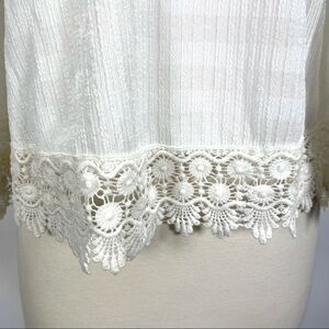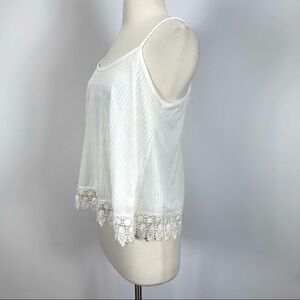 9.3 Eline by Line & Dot crochet lace trim tank top. Cami tank top. Crochet trim. Subtle stripes. Stretch in fabric. In excellent conditition. Size small.