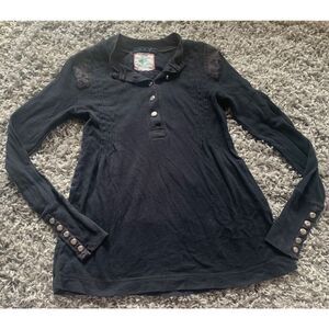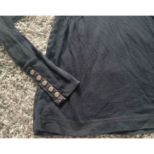 93 Free People black Snap Moto Cuff BURNOUT BOHO HENLEY SHIRT TOP sz M