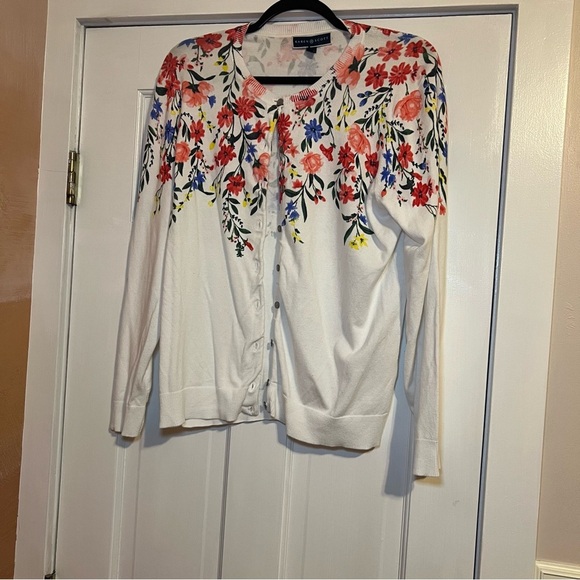 #94 KAREN SCOTT FLORAL PRINTED SWEATER CARDIGAN LARGE