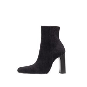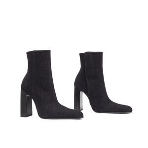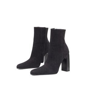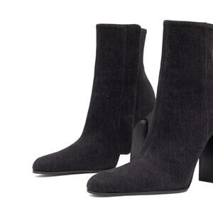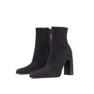 940$ BALENCIAGA Denim Ankle Hidden Side Zip Block Heel Boots Grey 37 / US 7