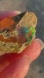 This is a 95 carat rough welo crystal opal specimen with a festival of gorgeous color: orange/red, green and some violet flashes of color. It looks beautiful when viewed in the sunlight. It is stored with a little water or moist paper towel to keep in wet to prevent drying and cracking.