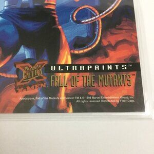 X-men Marvel Comics Xmen 95 Fleer Ultra Collectible Ultraprints. Apocalypse Fall of the Mutants picture approximately 6.5” x 10”. Not professionally graded but in very nice condition. Hasn’t been played with. Will ship with the plastic protector. Great to add to your collection or get framed to display as home decor in office, man cave or game room.