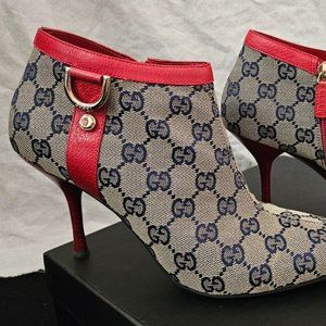 9.5 GUCCI*VERY RARE*GG MONOGRAM D RING*ZIPPERED*STILETTO*POINTED TOE*