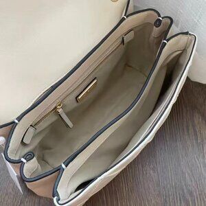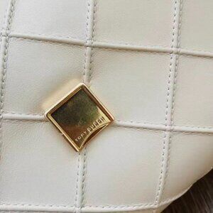 Convertible chain and leather interwoven shoulder strap with 22.2" (56.5cm) drop; leather shoulder guard for comfort