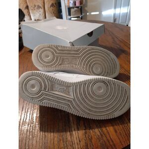 Good Used Condition (Has Been Sanitized with Unscented Sanitizer, but Has Not Been Laundered) Men's Size 9.5 White Nike Air Force 1 '07315122-111 Athletic, Casual, Running Sneakers Shoes. Comes with a Damaged Box- Shoe Strings and Shoes Need Washed- I Have Not Tried to Remove the Darker Areas. There are Minor Scuffs on the Shoes- Please See Pictures