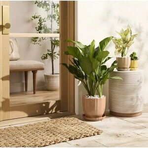 9.5 Scalloped Edge Stoneware Indoor/Outdoor Planter Pot with Saucer Cosmic Rust - Hearth & Hand with Magnolia